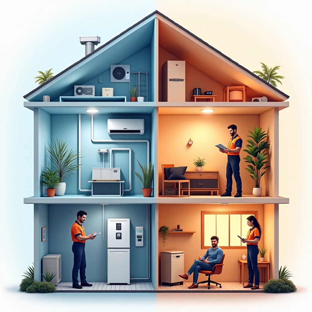 Les PAC air-air diffusent directement de l’air chaud ou froid dans les pièces. Elles sont plus simples à installer que les PAC air-eau et généralement moins coûteuses. Deux configurations existent :